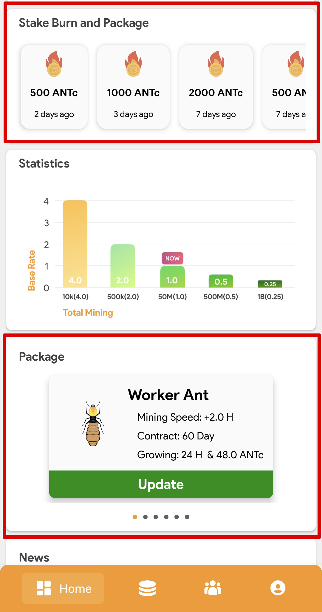 채굴은 2021년 2월 5일부터 시작했고 채굴속도는 처음에는 4 ANT/Hr에서 지금은 1 ANT/Hr 입니다.